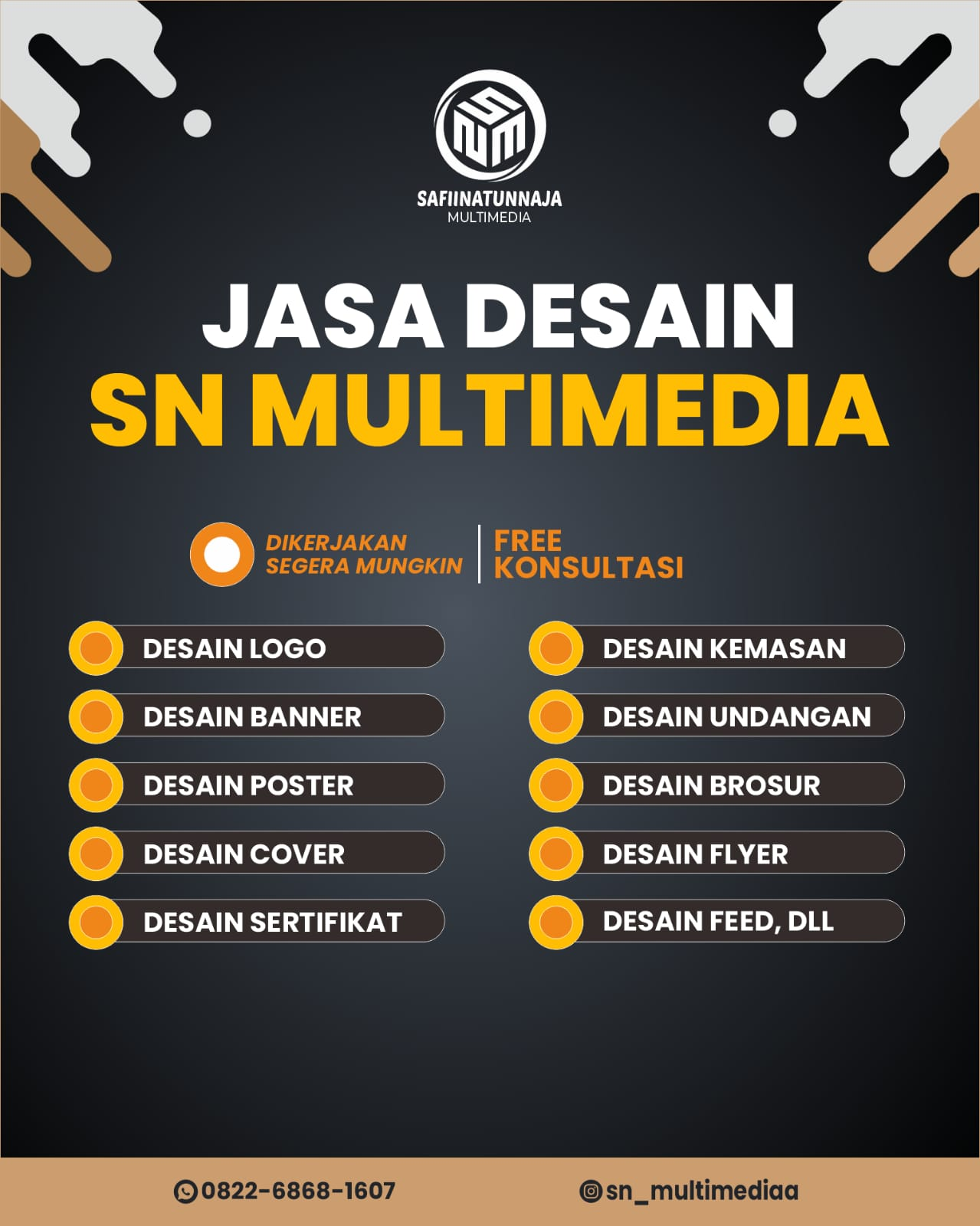 Logo, poster, konten sosial media.