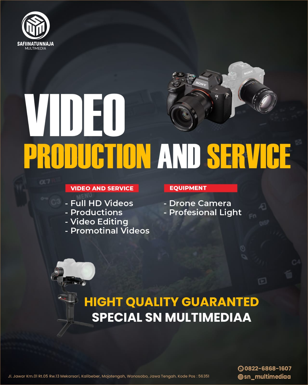 Video promosi, dokumentasi, cinematic.